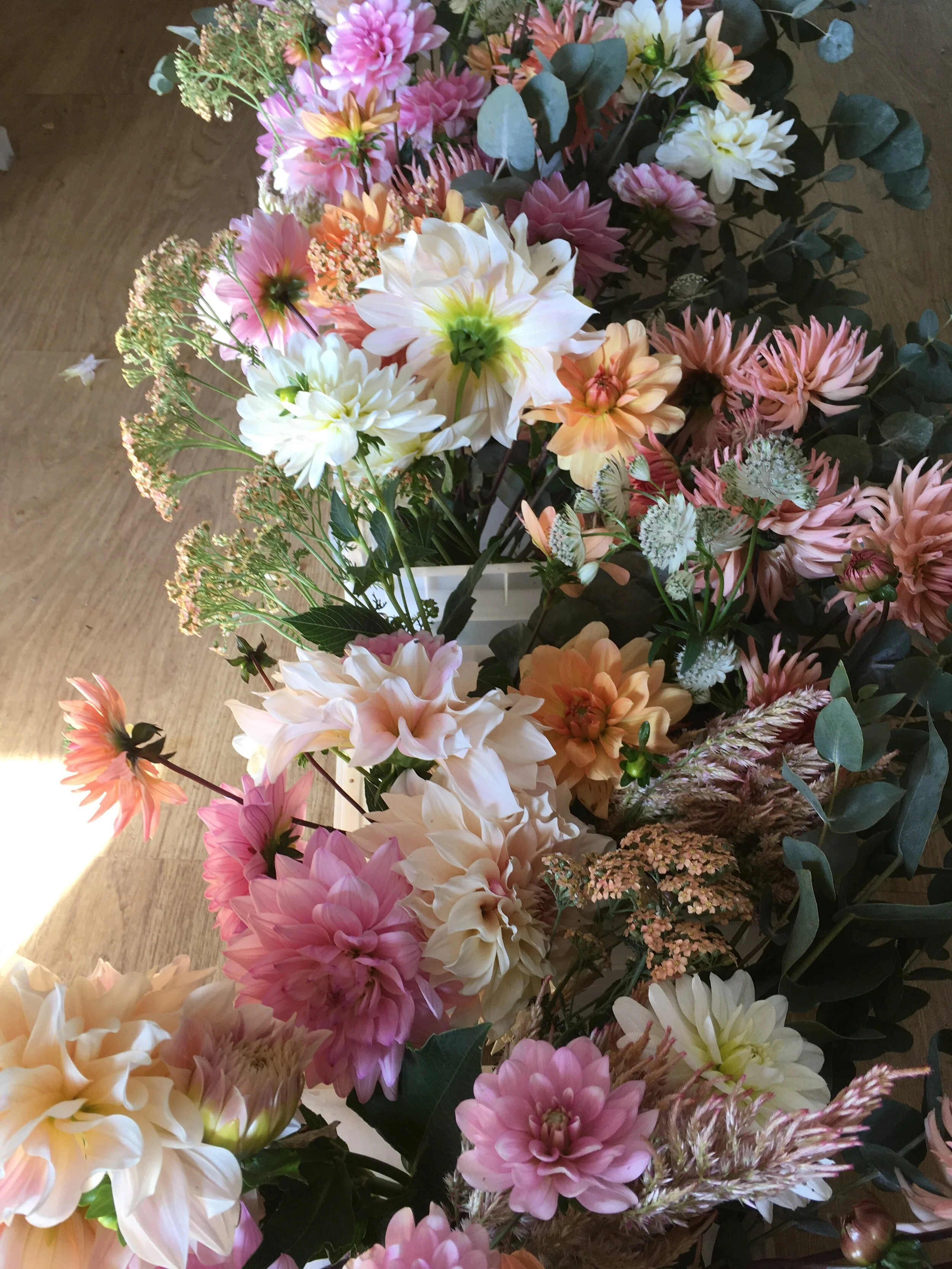 We count ourselves very lucky to be involved with one of the most special days in people's lives and work with you to make the most of the flowers that are in season at the time of your wedding. Whether you want flowers for your reception and ceremony, bouquets for the bridal party, or buttonholes for the groomsmen, we'll find the flowers to make your wedding day. During the summer months we sell buckets of flowers for DIY weddings, or we can supply the bouquets while you create the table decorations.